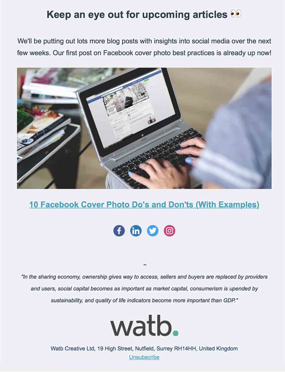 The best part? It requires very little effort on your part. Most email marketing platforms today have social sharing features that allow you to integrate your social media and email strategies with one another.