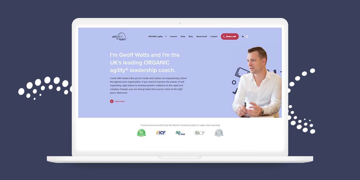 Geoff required a site that showcased his resources but helped guide users to relevant information on the site. The site also needed to handle varying course types, bookings and function as a repository for various resources related to Agile, Coaching, and Training.